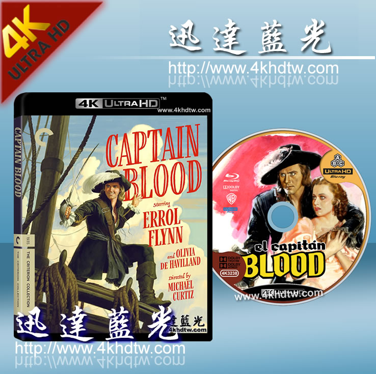 迅達4K UHD藍光影片- 4K3239 鐵血將軍/鐵血船長 Captain Blood (1935)CC標準收藏版,HDR10